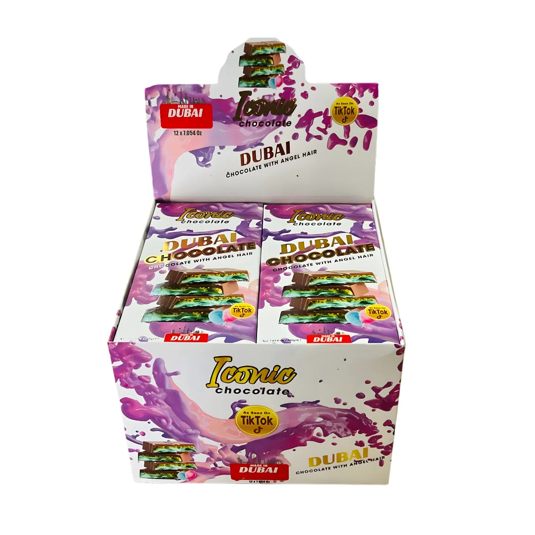 Indulge in a treat that feels straight out of a fairy tale! The Dubai Angel Hair & Milk Chocolate blends silky, creamy milk chocolate with delicate angel-hair sweetness to create a unique and unforgettable flavor. Inspired by the luxury and charm of Dubai, every bite brings you a little moment of happiness and pure enjoyment. Perfect for gifting, sharing, or simply treating yourself - this is a chocolate experience you won’t want to miss.